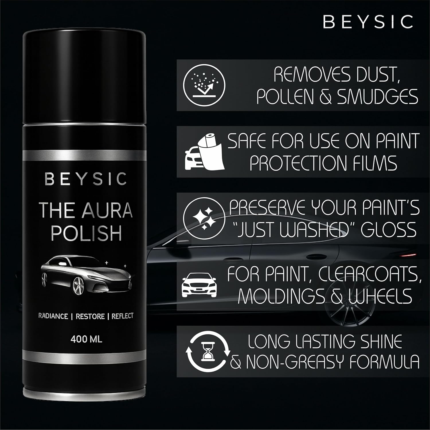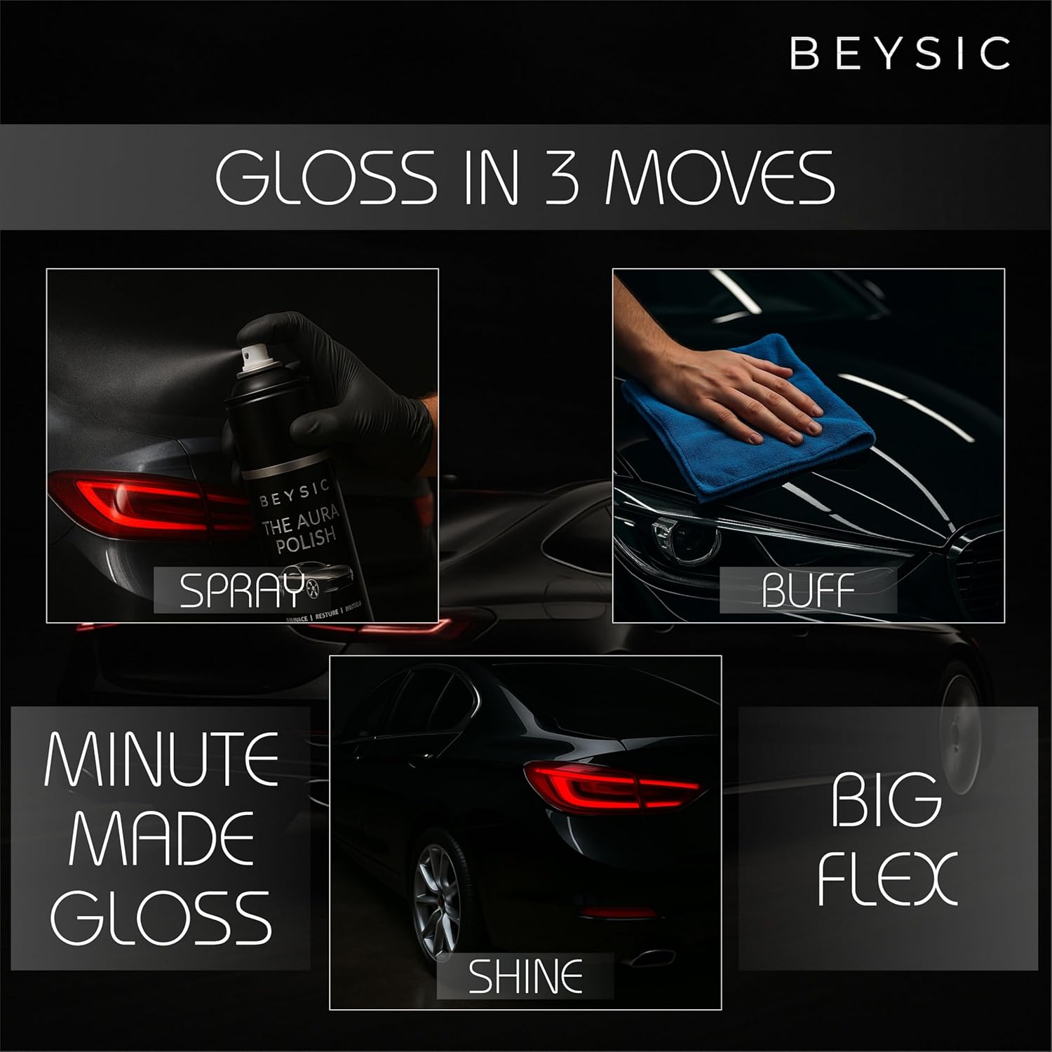 • EASY-TO-USE AUTO DETAILING SPRAY – BEYSIC car aura polish is a great addition to your car cleaning supplies, making quick touch-ups effortless, Simply mist on, wipe dry, and buff for an instant shine.