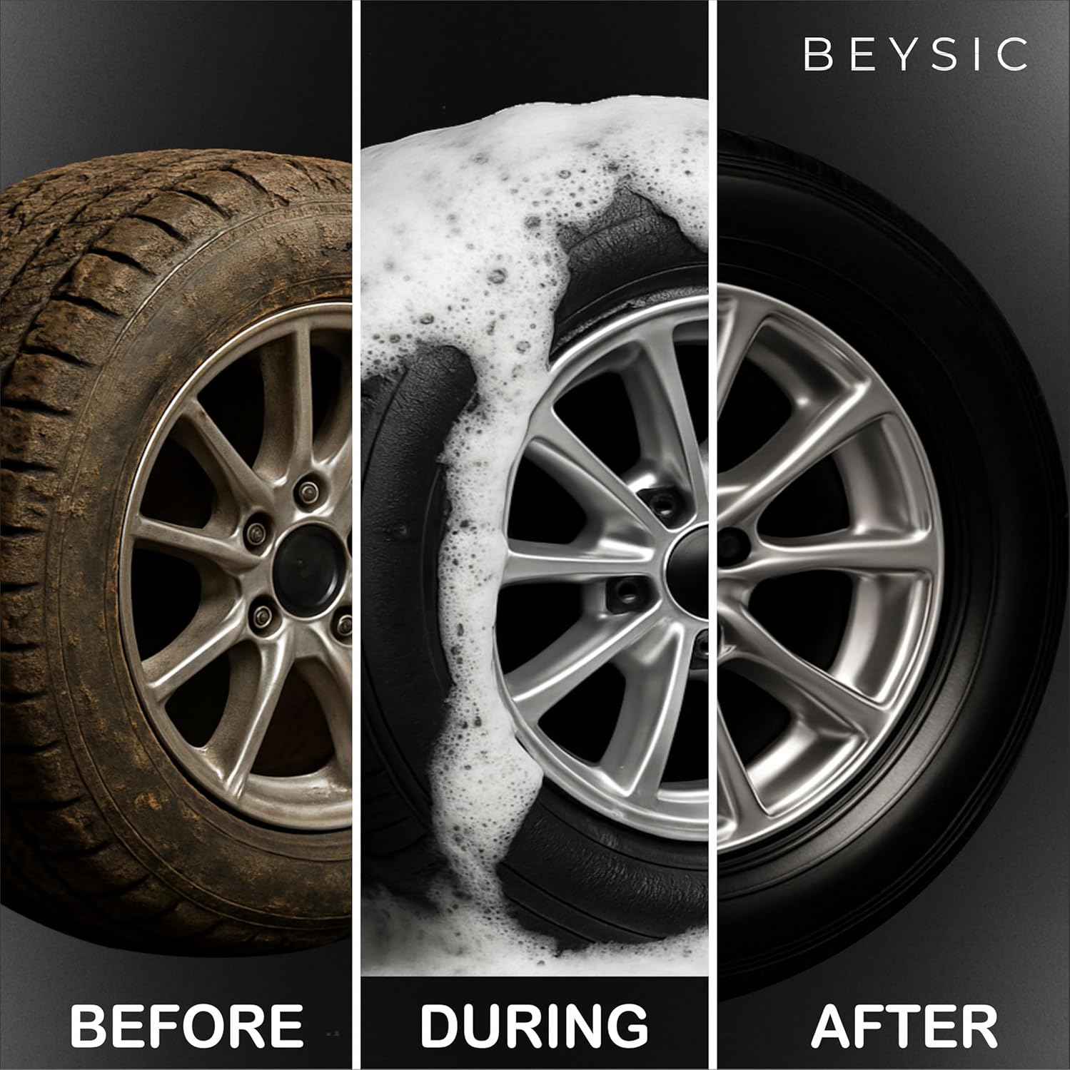 - GET A SEXY, LASTING TYRE SHINE – We’re all for practicality, but good looks don’t hurt! Achieving a high shine that stands the test of time demands better than the silicone found in many tire dressings. BEYSIC literally outshines them all! It delivers a thin polymer shield to your tires that achieves that attractive high gloss you want but won’t fade or wash off the minute or even weeks after you hit the road.